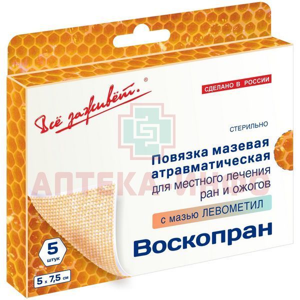 Воскопран с мазью Левометил повязка 5x7,5см №5 Новые перевязочные материалы/Россия