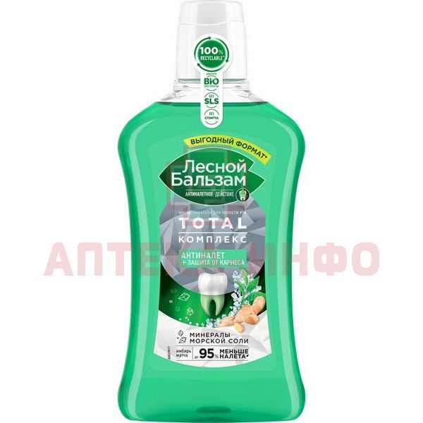 - ЛЕСНОЙ БАЛЬЗАМ ОПОЛАСКИВАТЕЛЬ ДЛЯ ПОЛОСТИ РТА TOTAL КОМПЛЕКС С МОРСКОЙ СОЛЬЮ ЭКСТРАКТОМ ИМБИРЯ И ЧАЕМ МАТЧА - новый ополаскиватель для комплексной защиты зубов и десен - Лесной бальзам TOTAL Комплекс с морской солью, экстрактом имбиря и чаем матча, в составе которого 98% ингредиентов натурального происхождения.