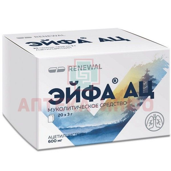 - В связи с высоким содержанием действующего вещества (600 мг ацетилцистеина в пакете-саше) не следует принимать препарат детям в возрасте до 14 лет. В этом случае рекомендуется использовать препарат Эйфа® АЦ в других дозировках с более низким содержанием ацетилцистеина.