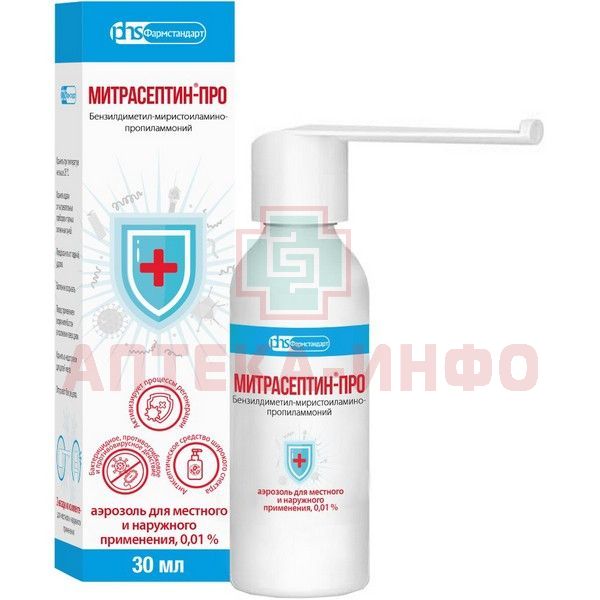 - Благодаря широкому спектру противомикробного действия, аэрозоль для местного и наружного применения МИТРАСЕПТИН®-ПРО можно применять при смешанных бактериальных и грибковых инфекциях, особенно в начальный период лечения, до идентификации возбудителей заболевания. Эффективность препарата МИТРАСЕПТИН®--ПРО повышается, если наносится на раневую поверхность, предварительно промытую асептическим раствором.