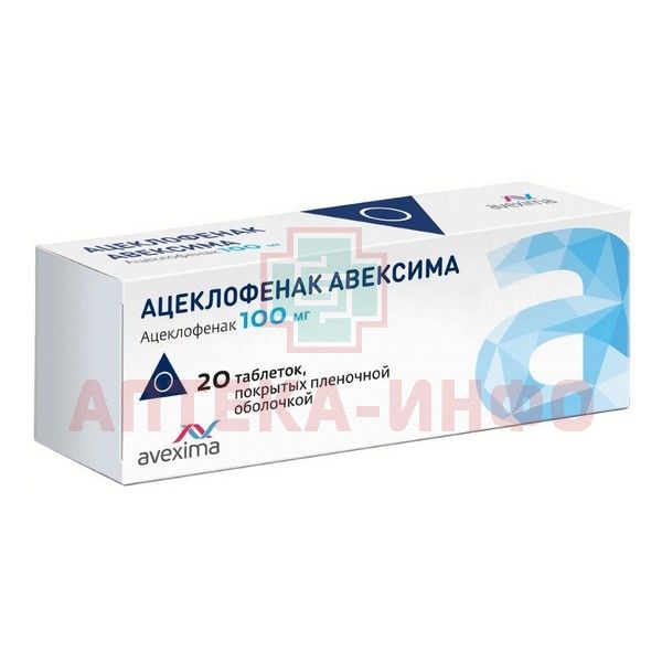 Ацеклофенак Авексима таб. п/пл. об. 100мг №20 Ирбитский ХФЗ/Россия