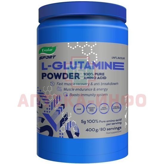 - L-Glutamine от EvalarSport - это 100% L-глутамин в быстро усваиваемой форме порошка для разведения в воде или соке. Продукт производится в соответствии с международным стандартом качества GMP.
