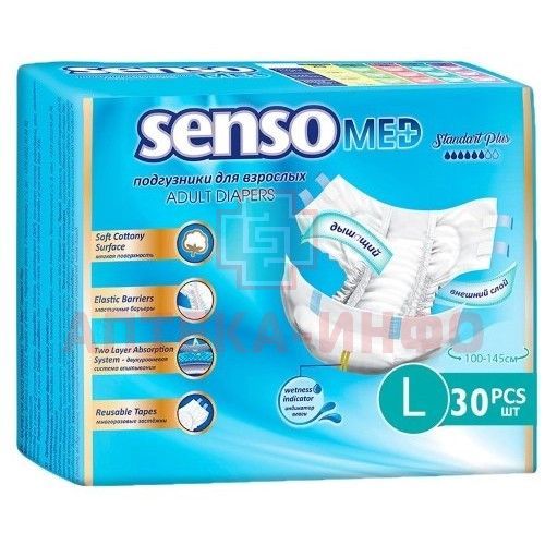 - SENSO MED ПОДГУЗНИКИ ДЛЯ ВЗРОСЛЫХ ОДНОРАЗОВЫЕ STANDART PLUS - для людей с тяжелой степенью инконтиненции (недержания).