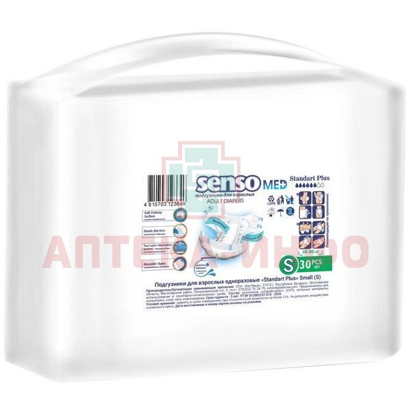 - SENSO MED ПОДГУЗНИКИ ДЛЯ ВЗРОСЛЫХ ОДНОРАЗОВЫЕ STANDART PLUS - для людей с тяжелой степенью инконтиненции (недержания).