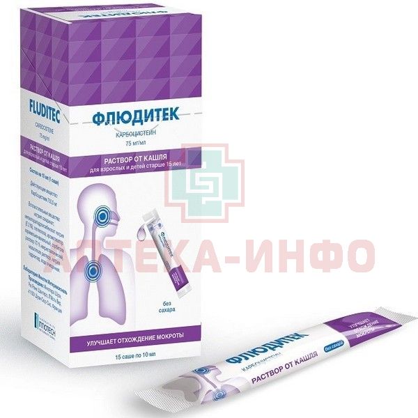 Флюдитек саше(р-р д/приема внутрь) 750мг/10мл 10мл №15 Unither Liquid Manufacturing/Франция