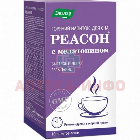 - Реасон с мелатонином - это современная комбинация нутриентов, тщательно отобранных по принципу наибольшей эффективности и представленных в максимальных1 дозировках в легко доступной форме горячего напитка.