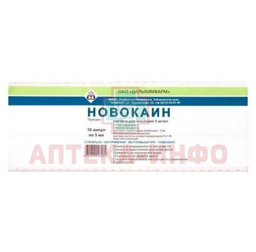 Новокаин амп.(р-р д/ин.) 5мг/мл 5мл №10 короб. карт. (Дальхимфарм)