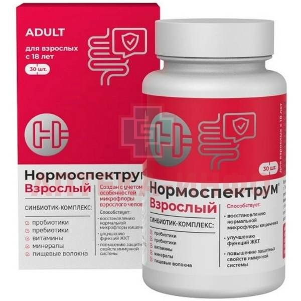- «Нормоспектрум® для взрослых» способствует восстановлению нормальной микрофлоры кишечника, улучшению функционального состояния желудочно-кишечного тракта и повышению защитной функции иммунной системы взрослых с 18 лет.
