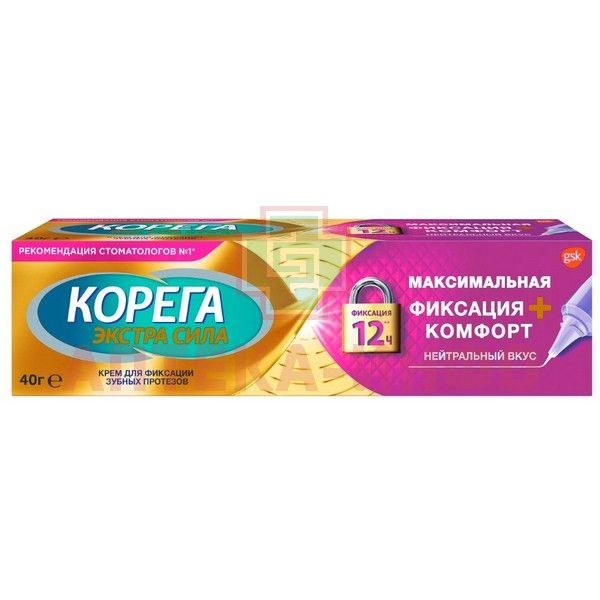 - Созданный для комфорта, крем Корега Максимальная Фиксация + Комфорт фиксирует зубной протез на весь день, предотвращая смещения, и создает мягкий амортизирующий слой для защиты ваших дёсен от давления зубного протеза. Тонкий носик-аппликатор позволяет точечно наносить крем Корега на зубной протез.