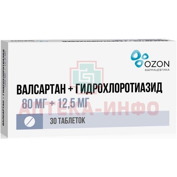 Валсартан+Гидрохлоротиазид таб. п/пл. об. 80мг+12,5мг №30 Озон Фарм