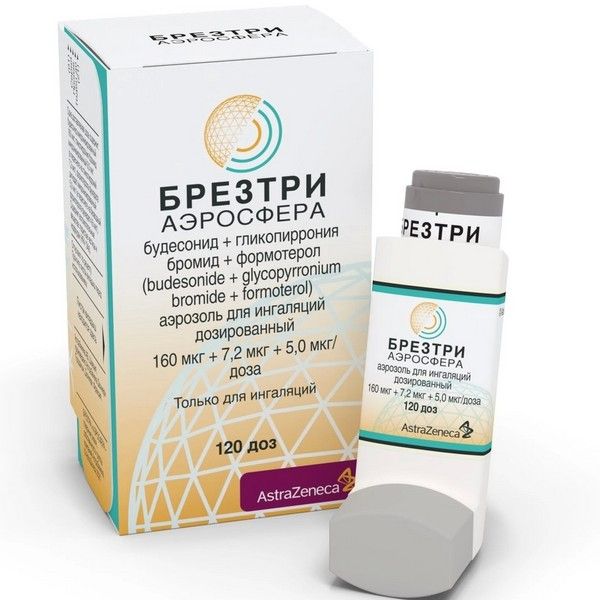 Брезтри Аэросфера ингалятор(аэр. д/ингал. дозир.) 160мкг+7,2мкг+5мкг/доза 10,7г (120 доз) Astrazeneca Dunkerque Production/Франция