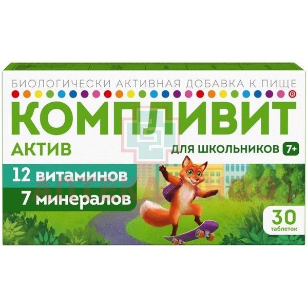 - Действие БАД к пище «Компливит® Актив» обусловлено свойствами входящих в состав компонентов. Комплекс витаминов и минералов, являющихся важными факторами полноценного физического и интеллектуального развития ребенка, укрепления иммунитета, усиления адаптационных возможностей организма.