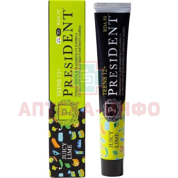 - ПРЕЗИДЕНТ ЗУБНАЯ ПАСТА JUICY LIME - обеспечивает защиту от кариеса, заботу о деснах и эффективное очищение.