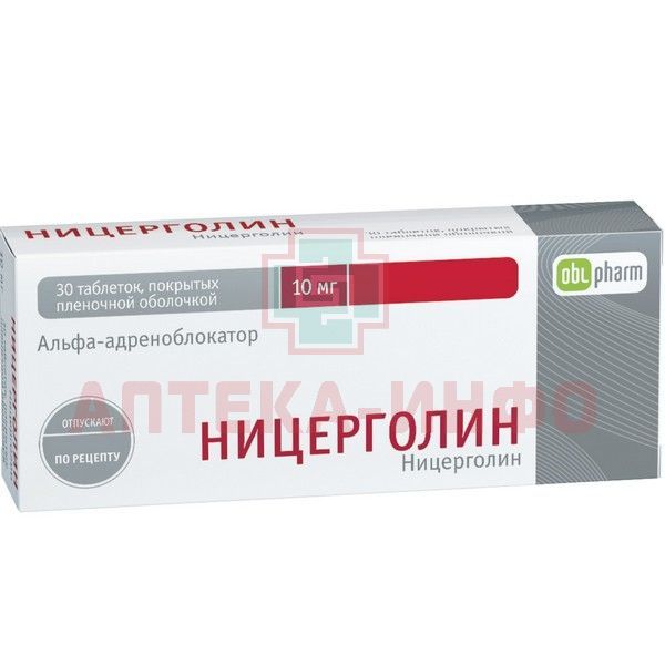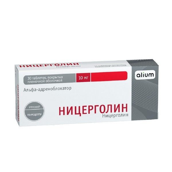 - Действующее вещество: ницерголин 10 мг;