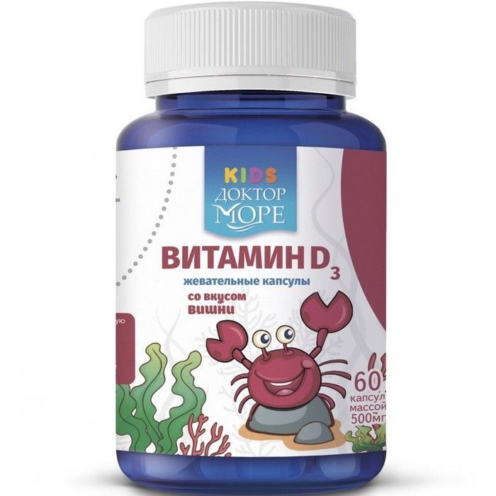 - Доктор море. Витамин D3, детские жевательные драже со вкусом вишни.