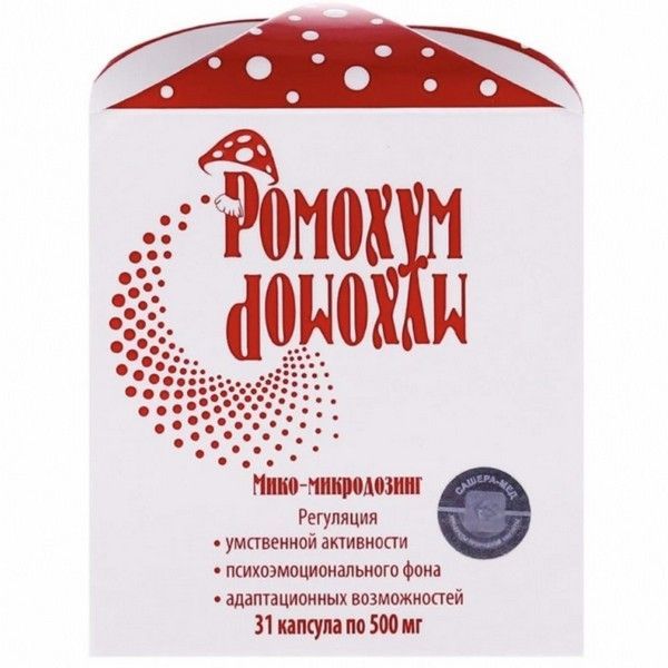 30 капсул с микродозингом мухомора – 300 мг, 1 капсула (красная) – 100 мг.