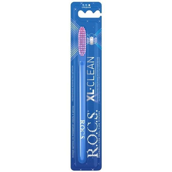 - Зубная щетка R.O.C.S.® XL-CLEAN изготовлена с использованием текстурированной щетины с закругленными безопасными кончиками.