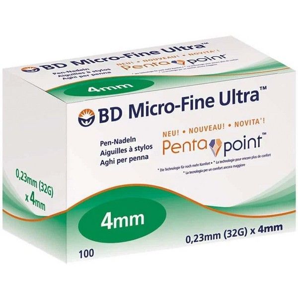 - ИГЛА ДЛЯ ШПРИЦ-РУЧКИ BD MICRO-FINE PLUS С ЗАТОЧКОЙ PENTAPOINT 0,23ММ (32G)Х4ММ - для парентерального (подкожного) введения лекарственного препарата/инсулина из картриджа, расположенного в шприц-ручке.