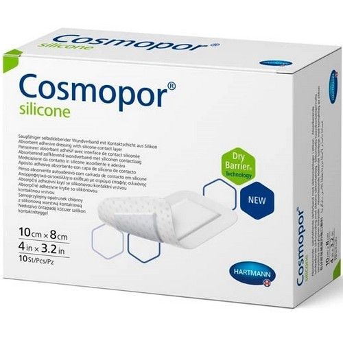 - Cosmopor® silicone/Кocмoпop силикон представляет собой неактивную одноразовую самоклеящуюся стерильную и полупроницаемую повязку на рану (гидроцеллюлярную тонкую повязку), состоящую из нетканого материала основы (материала-носителя) и впитывающей подушечки для раны. Обе части повязки покрыты силиконовым клеевым перфорированным слоем и защищены пленкой.