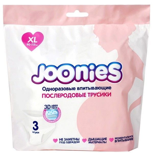 - Послеродовые трусики Joonies можно использовать при любых обильных выделениях и не только в роддоме, ночью для спокойного сна и даже днем, потому что они такие тонкие, что не заметны под одеждой.