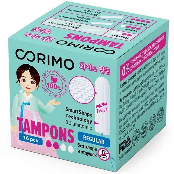 - Современные и технологичные тампоны Corimo разработаны совместно с лабораторией в Южной Корее.