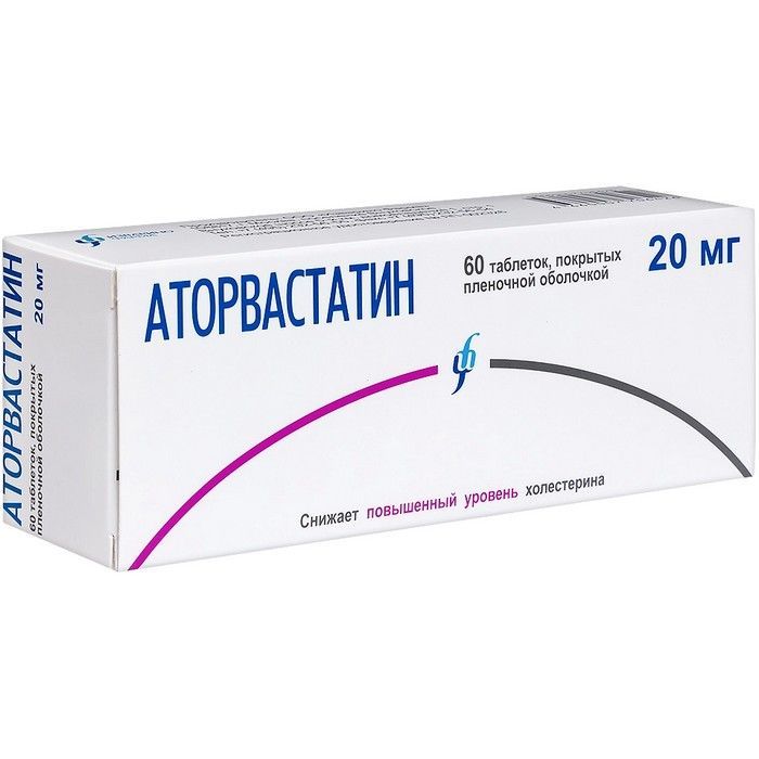 Аторвастатин таб. п/пл. об. 20мг №60 Изварино Фарма