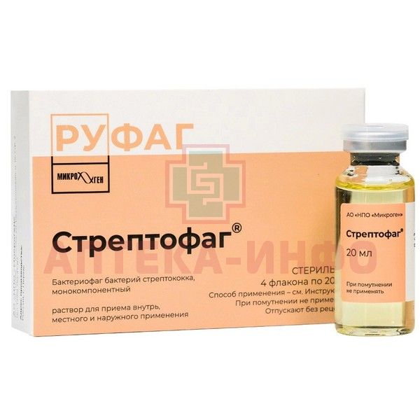Стрептофаг фл.(р-р д/приема внутрь местн. и наружн. прим.) 20мл №4 Микроген НПО(Биомед, г. Пермь)