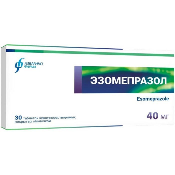 Эзомепразол таб. кишечнораств. п/об. 40мг №30 Изварино Фарма/Россия