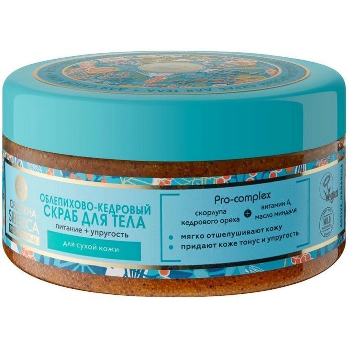 - OBLEPIKHA SIBERICA СКРАБ ДЛЯ ТЕЛА ОБЛЕПИХОВО-КЕДРОВЫЙ ПИТАНИЕ+УПРУГОСТЬ - Мягко очищает и отшелушивает кожу, придавая ей необычайную мягкость, тонус и упругость.