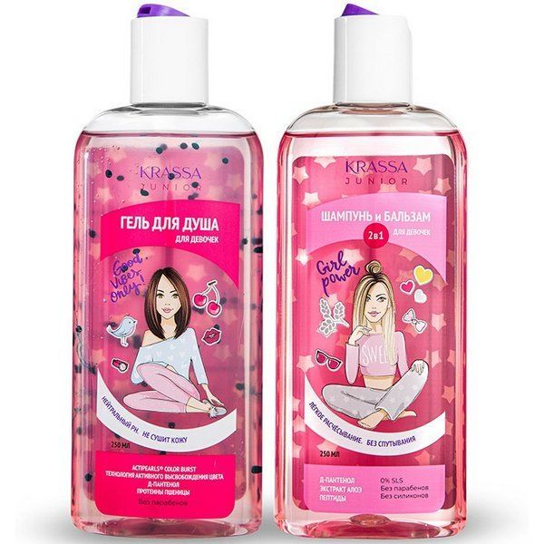 Набор подарочный KRASSA JUNIOR для девочек (гель для душа,шампунь) КРАССА-Косметикс/Россия
