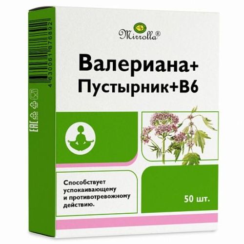 Валериана+пустырник+В6 таб. №50 Мирролла/Россия