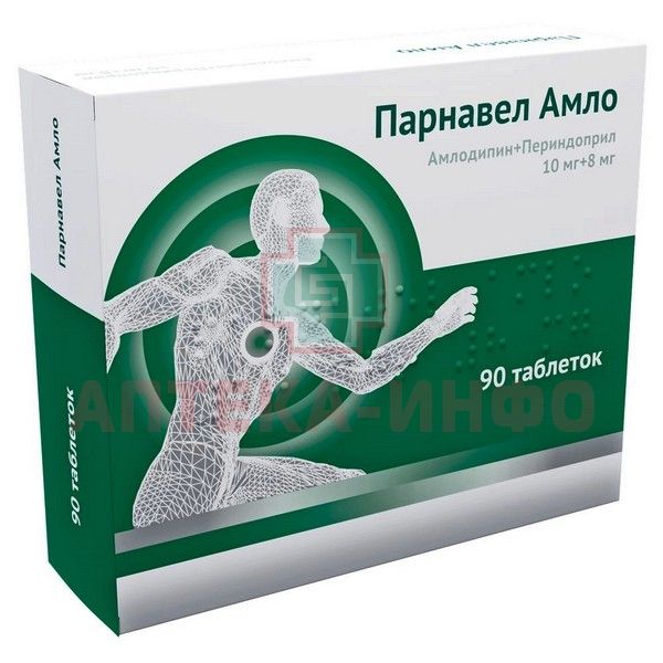 Величина абсорбции периндоприла и амлодипина при применении препарата Парнавел Амло существенно не отличается от таковой при применении монопрепаратов.