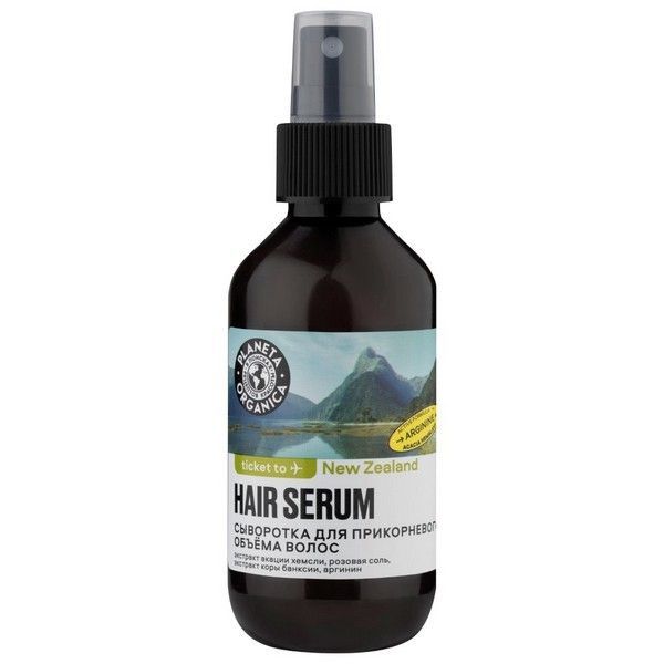 - PLANETA ORGANICA СЫВОРОТКА ДЛЯ ПРИКОРНЕВОГО ОБЪЕМА ВОЛОС TICKET TO NEW ZEALAND - мгновенно приподнимает волосы у корней, утолщает каждую прядь, создает объём и визуально делает волосы более густыми.