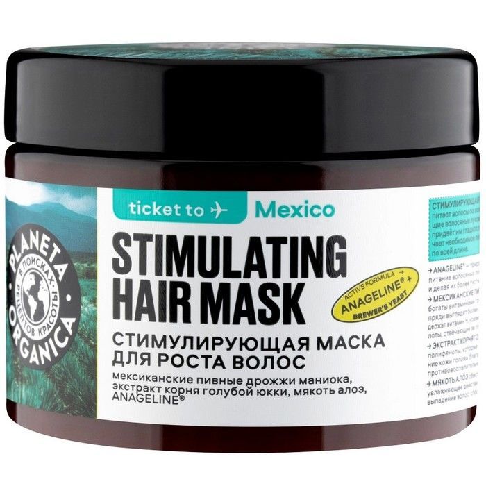- PLANETA ORGANICA МАСКА ДЛЯ РОСТА ВОЛОС СТИМУЛИРУЮЩИЙ TICKET TO MEXICO - питает волосы по всей длине, стимулирует спящие волосяные луковицы, разглаживает волосы, придаёт им гладкость и блеск.