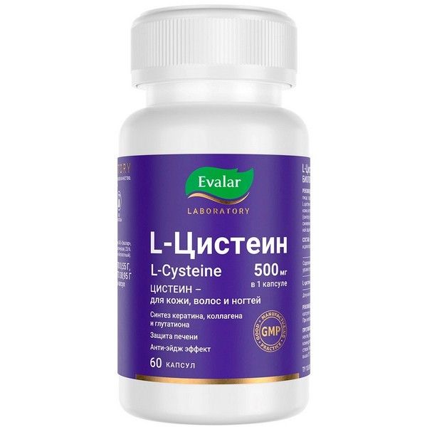 - L-цистеин 500 мг от Evalar Laboratory в активной L-форме быстро всасывается и действует на клеточном уровне.