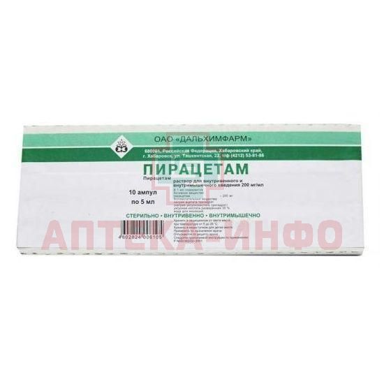 Пирацетам амп.(р-р д/в/в и в/м введ.) 200мг/мл 5мл №10 короб.карт. (Дальхимфарм)