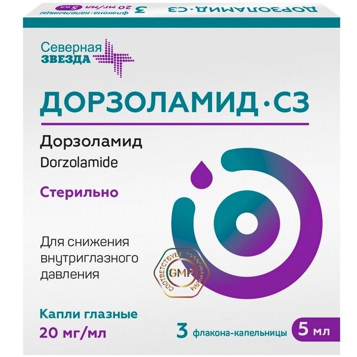 Дорзоламид-СЗ фл.-кап.(капли глазн.) 20мг/мл 5мл №3 Диафарм/Россия/Северная звезда/Россия