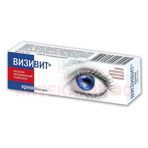 Крем для век «Визивит». Крем помогает устранять отеки и темные круги под глазами, восстанавливать эластичность кожи, обладает лифтинговым эффектом. Комплекс лекарственных растений, входящих в его состав, позволяет интенсивно питать и увлажнять чувствительную кожу век. Может использоваться в качестве основы под макияж. Не является лекарством.