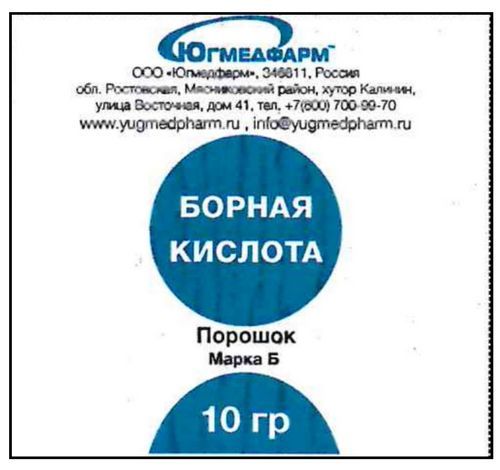Борная кислота - антисептическое средство, оказывает также инсектицидное (в т. ч. противопедикулезное) действие. Коагулирует белки (в т. ч. ферментные) микробной клетки, нарушает проницаемость клеточной оболочки. 5% водный раствор подавляет процессы фагоцитоза, 2 4% раствор задерживает рост и развитие бактерий.