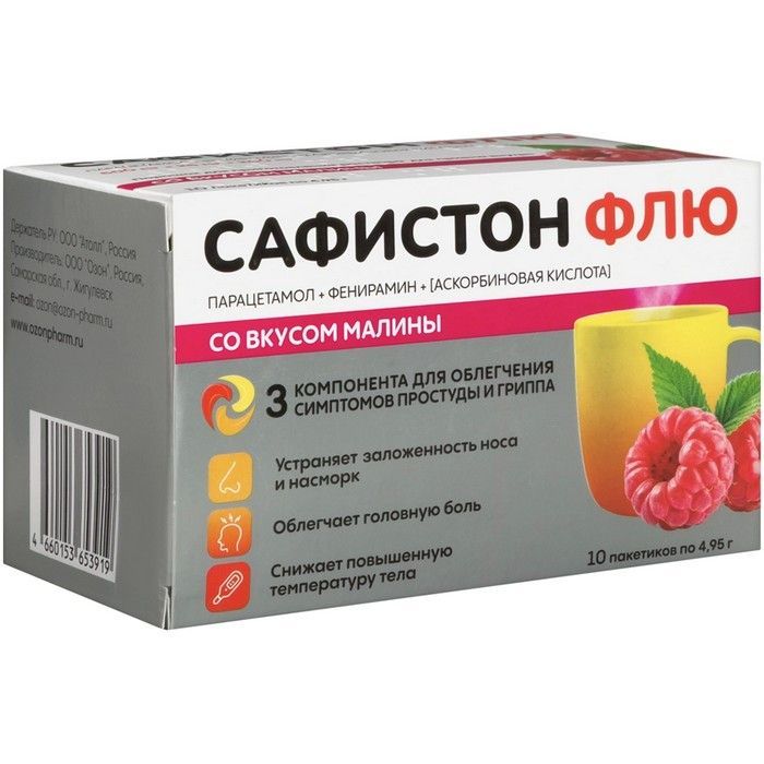 Сафистон Флю пак.(пор. д/приг. р-ра д/приема внутрь) 4,95г №10 (малина) Озон
