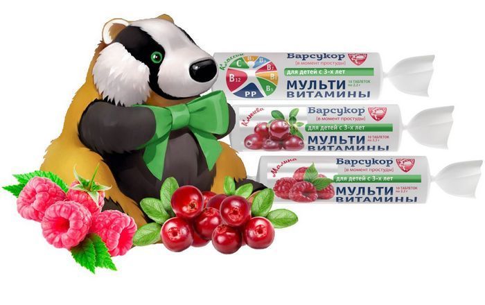 - БАРСУКОР МУЛЬТИВИТАМИНЫ ДЛЯ ДЕТЕЙ И ВЗРОСЛЫХ СО ВКУСОМ МАЛИНЫ - Биологически активная добавка (БАД) к пище в момент простуды
