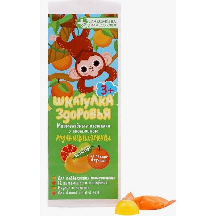- ЛАКОМСТВА Д/ЗДОРОВЬЯ ШКАТУЛКА ЗДОРОВЬЯ МУЛЬТИВИТАМИНЫ С АПЕЛЬСИНОМ - мармеладные пастилки в виде полусферы массой 7 гр.