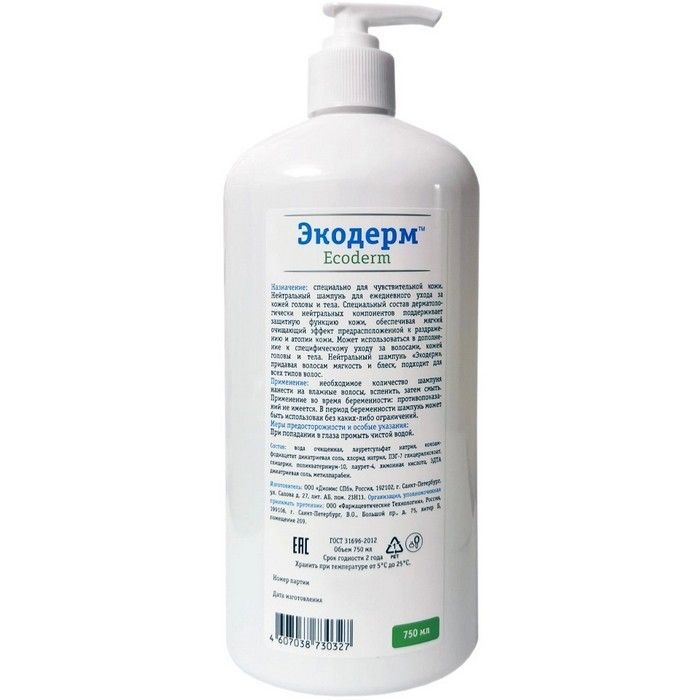 - ЭКОДЕРМ ШАМПУНЬ ДЛЯ ВОЛОС - шампунь для всех типов волос, для ежедневного использования специально для чувствительной кожи головы и тела