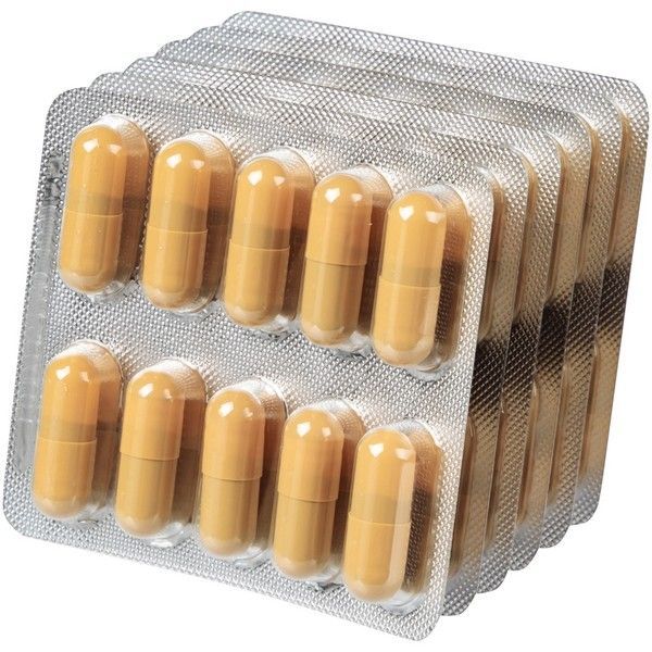 - Твердые желатиновые капсулы № 0 желтого цвета. Содержимое капсул - порошок или уплотненная масса желтовато-коричневого цвета с частицами коричневого и белого цвета, распадающаяся при нажатии.