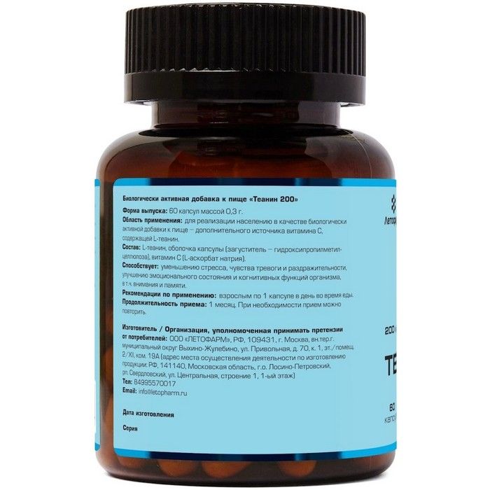Летофарм Теанин 200 капс. №60 ЛетоФарм/Россия