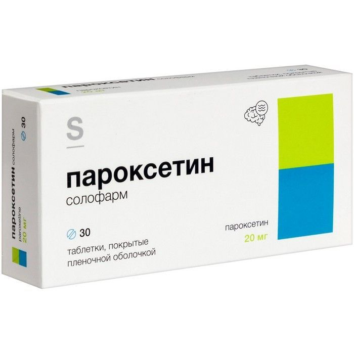 Пароксетин солофарм таб. п/пл. об. 20мг №30 Гротекс/Россия