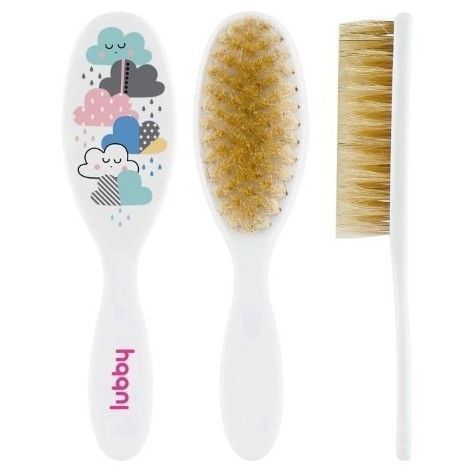 - Набор из расчески и щетки можно использовать с первых дней жизни ребенка. Щетка изготовлена из натуральной щетины и подходит для удаления себорейной корочки. Расческа имеет скругленные кончики и не травмирует кожу при использовании.