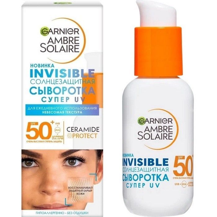 - Garnier Амбре Солер солнцезащитная сыворотка для лица "Невидимая Защита" СПФ 50 - невидимая сыворотка для ежедневного использования