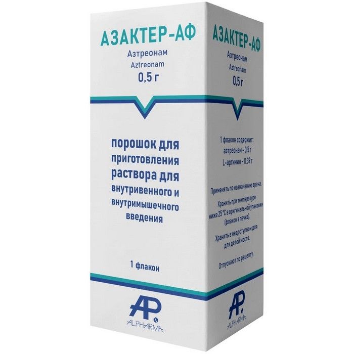 - Каждый флакон содержит 0,5 г азтреонама.