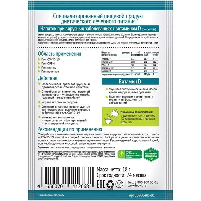 - Напиток / ЛЕОВИТ / Напиток при вирусных заболеваниях с витамином D /